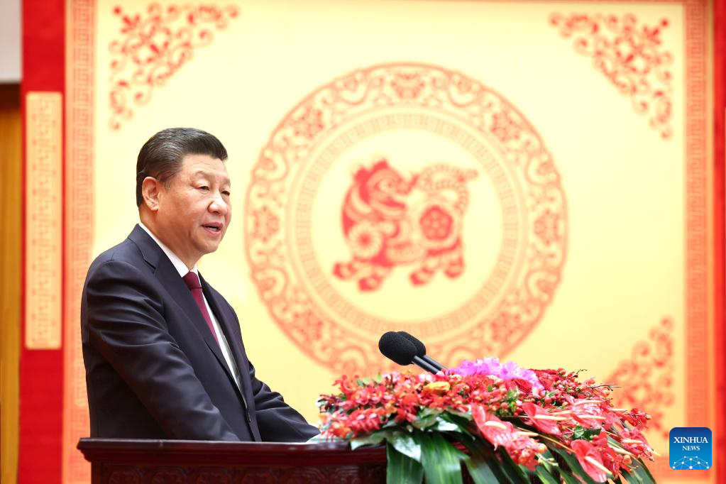 Chinese President Xi Jinping, on behalf of the Communist Party of China (CPC) Central Committee and the State Council, extended Spring Festival greetings to all Chinese Sunday at a reception in Beijing.
