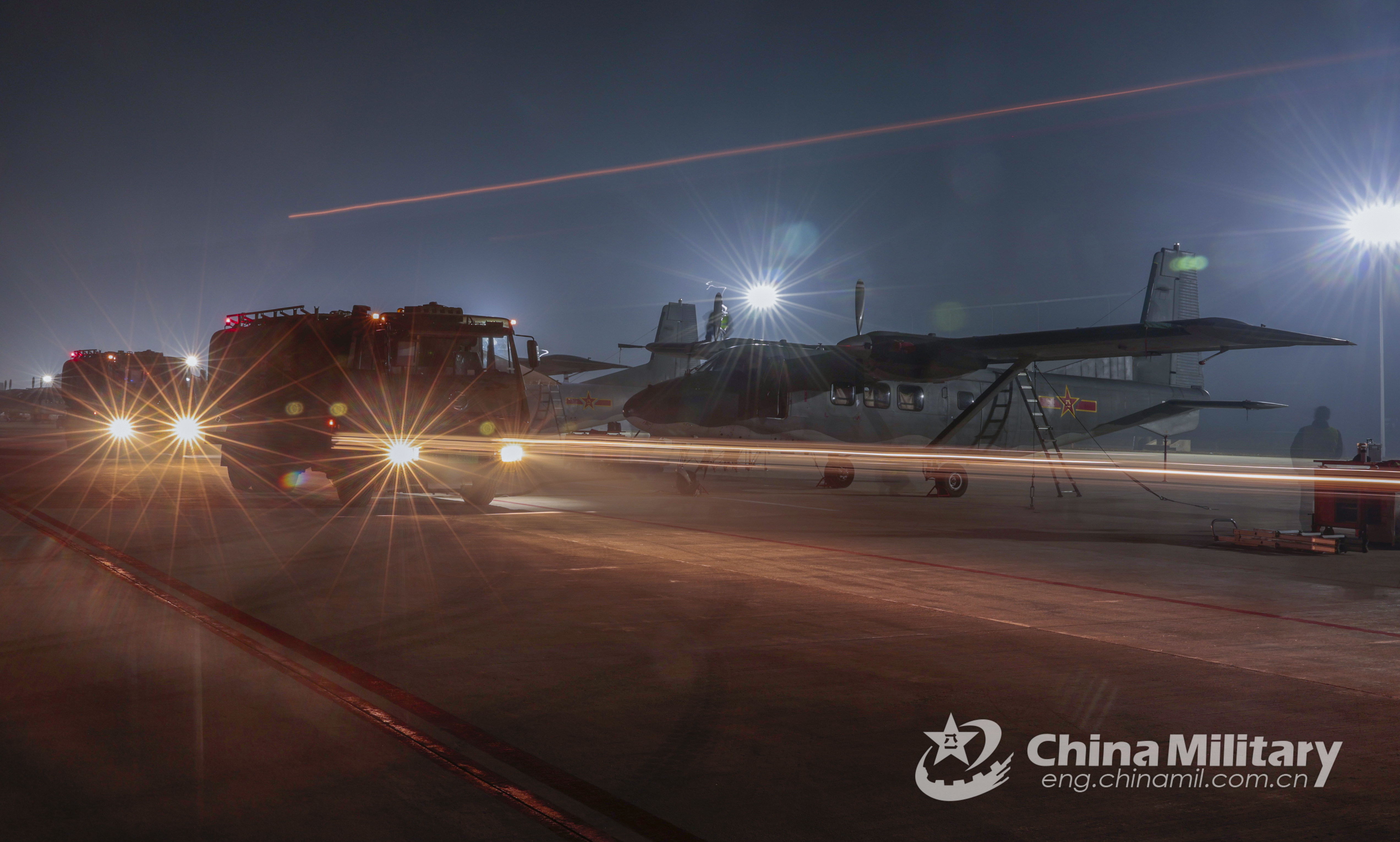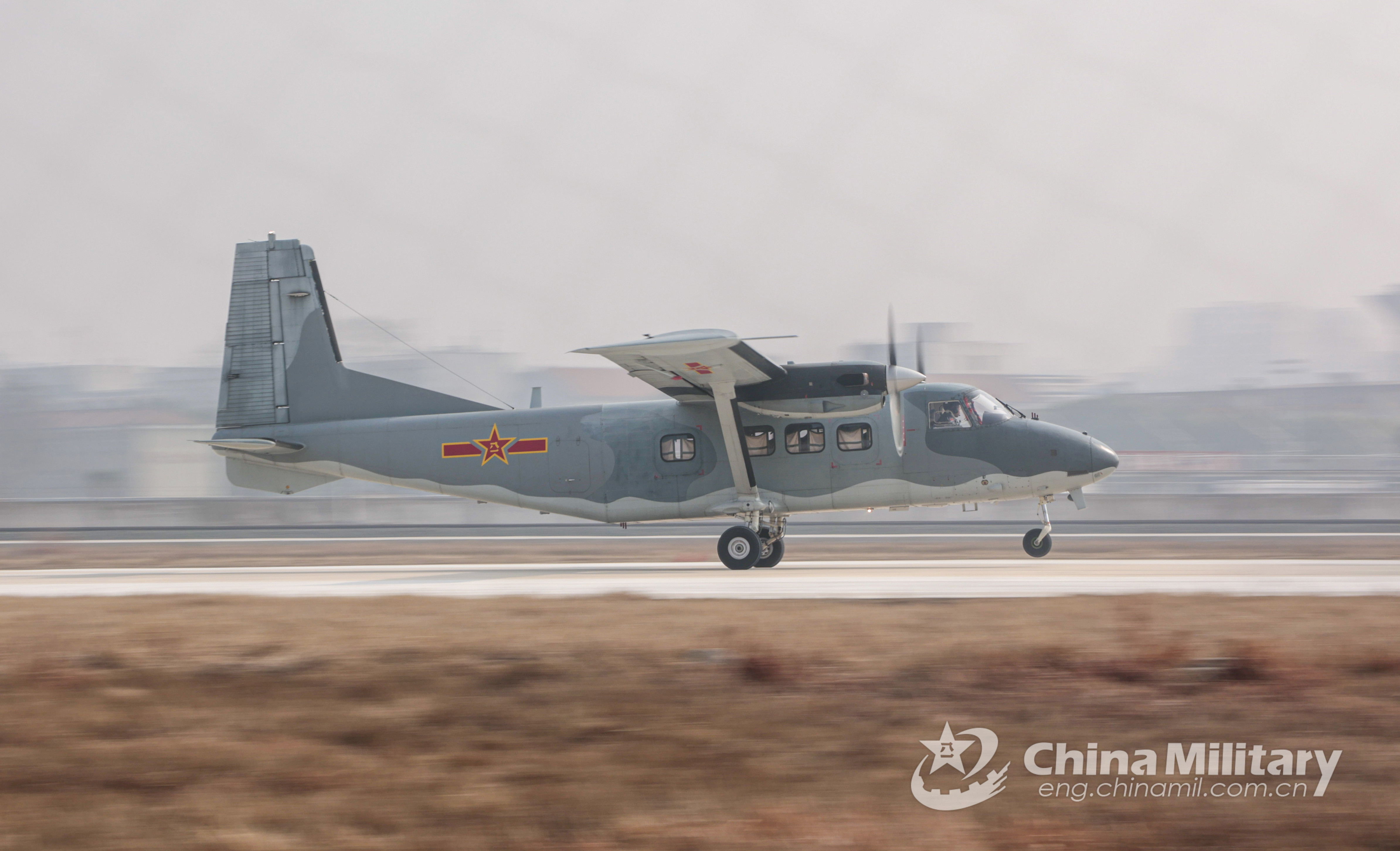 A Y-12 transport aircraft attached to assigned to an air transport brigade under the PLA airborne troops taxies before takeoff during the high-intensity and day-and-night flight training on January 18, 2022. (eng.chinamil.com.cn/Photo by Li Zhuojun)