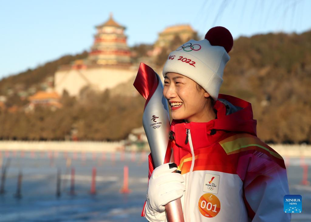 Torch bearer Ding Ning attends the Beijing Olympic Torch Relay at the Summer Palace in Beijing, capital of China, Feb. 4, 2022. (Xinhua/Jia Haocheng)