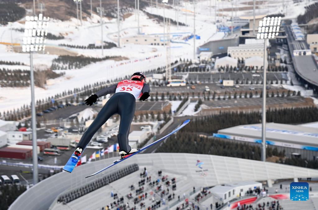Jan Vytrval of Czech Republic competes during Nordic Combined Individual Gundersen Normal Hill/10km, Ski Jumping Competition Round at the National Ski Jumping Centre in Zhangjiakou, north China's Hebei Province, Feb. 9, 2022. (Xinhua/Dai Tianfang)