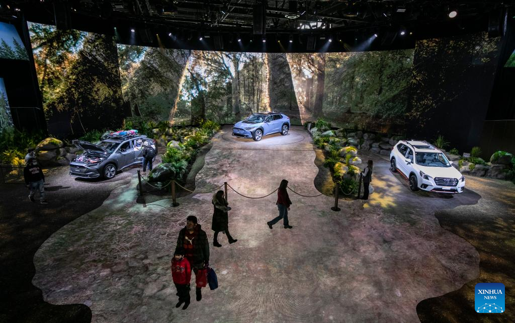Visitors view Subaru vehicles during the Chicago Auto Show at McCormick Place in Chicago, the United States, on Feb. 15, 2022. The show is held from February 12 to 21. (Photo by Joel Lerner/Xinhua)