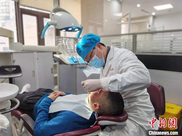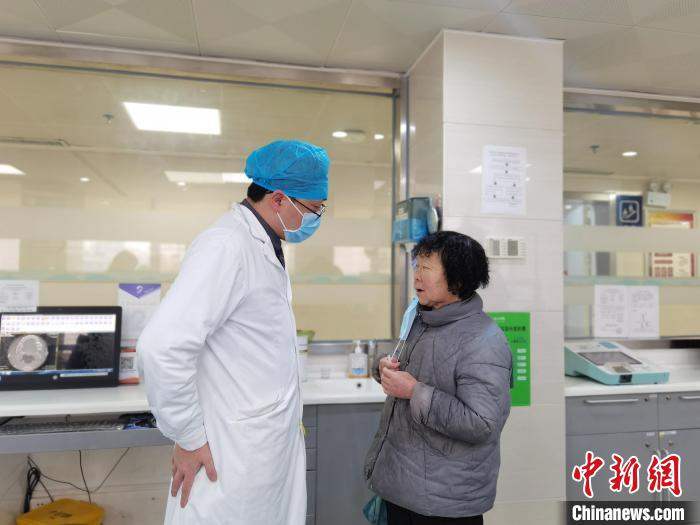 Huang Chengwei gives a patient an oral examination. (Photo/Zhou Yanling)