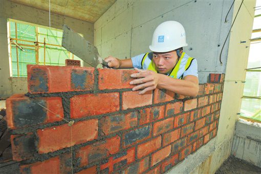 After one year of hard work, Zou ensured that the thickness of a horizontal joint and a vertical mortar joint is no more than 1cm. He also guaranteed that the surface of the brick wall built by him looks smooth and clean and that the wall is vertical.
