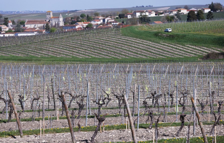 Photo taken on March 23, 2022 shows a general view of the vineyard at Remy Martin house in Cognac, southwestern France. Cognac/eau-de-vie de cognac/eau-de-vie des charentes is listed in the China-EU agreement on geographical indications. (Xinhua/Gao Jing)