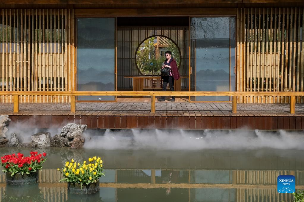 A woman visits China's pavilion at Floriade Expo 2022 in Almere, the Netherlands, on April 14, 2022. With the theme "Growing Green Cities," Floriade Expo 2022, a world horticultural exhibition, opened here on Thursday. (Xinhua/Zhang Cheng)