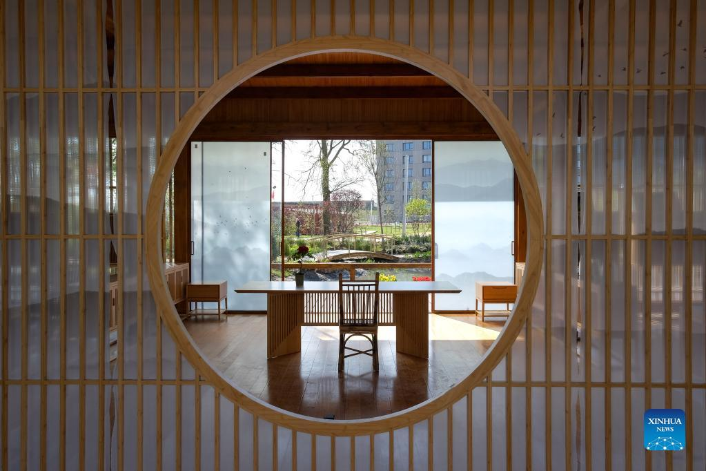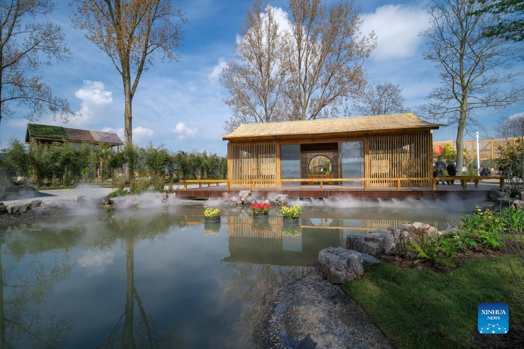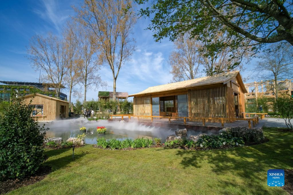 Photo taken on April 14, 2022 shows China's pavilion at Floriade Expo 2022 in Almere, the Netherlands. With the theme "Growing Green Cities," Floriade Expo 2022, a world horticultural exhibition, opened here on Thursday. (Xinhua/Zhang Cheng)