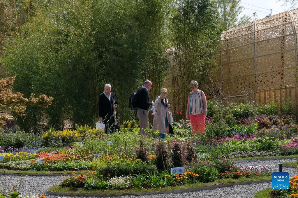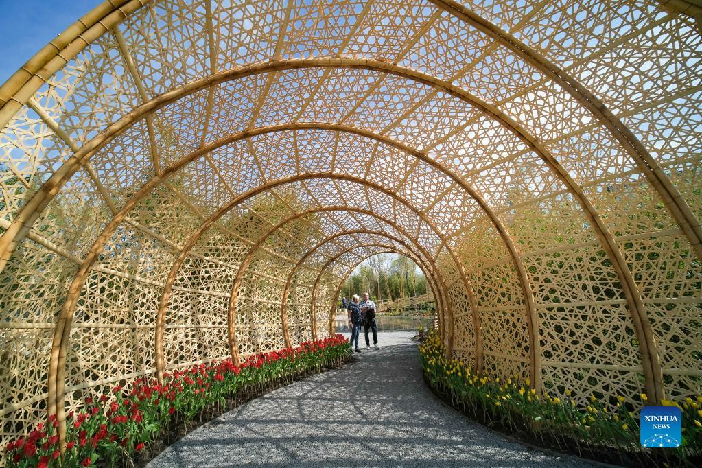 People visit China's pavilion at Floriade Expo 2022 in Almere, the Netherlands, on April 14, 2022. With the theme "Growing Green Cities," Floriade Expo 2022, a world horticultural exhibition, opened here on Thursday. (Xinhua/Zhang Cheng)