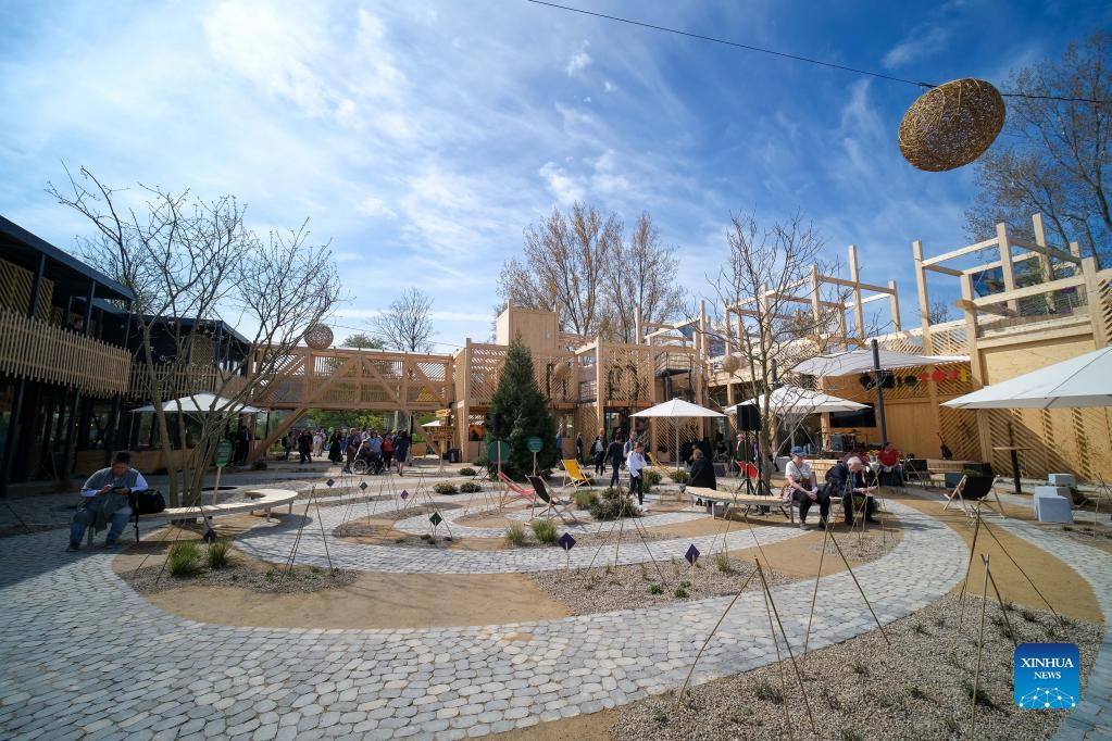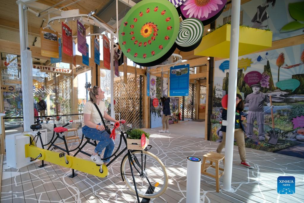 People visit Province Flevoland's pavilion at Floriade Expo 2022 in Almere, the Netherlands, on April 14, 2022. With the theme "Growing Green Cities," Floriade Expo 2022, a world horticultural exhibition, opened here on Thursday. (Xinhua/Zhang Cheng)