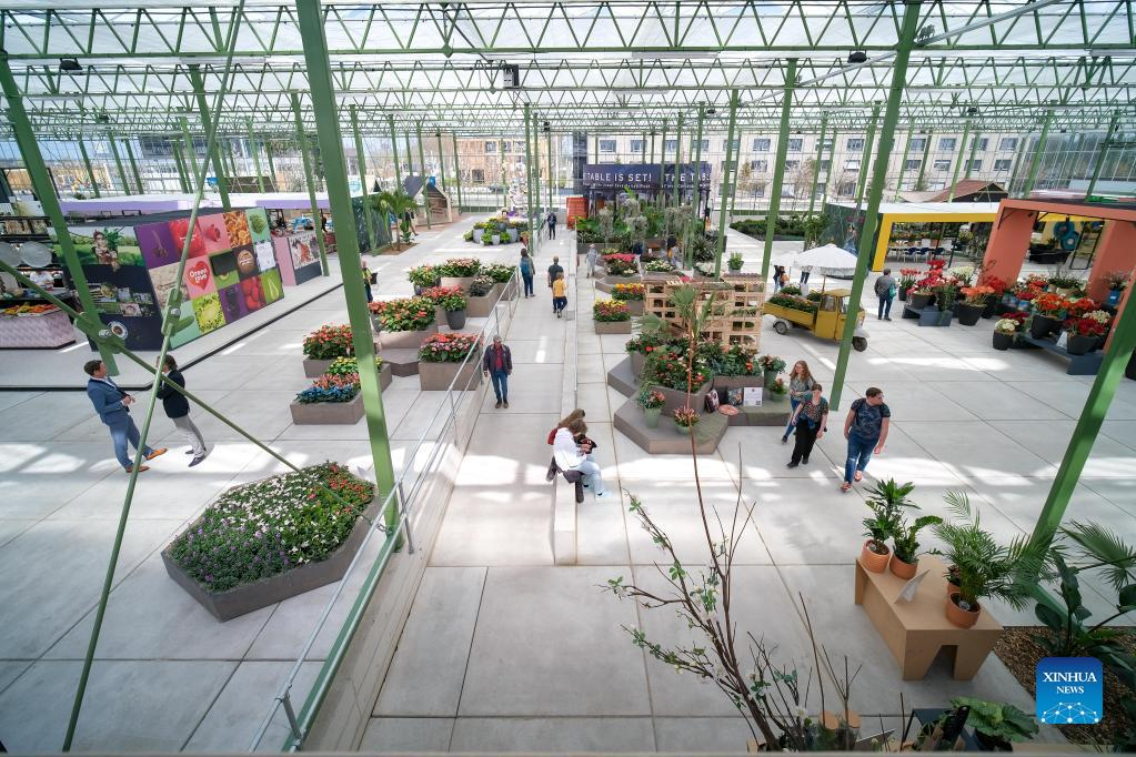People visit the Green House at Floriade Expo 2022 in Almere, the Netherlands, on April 14, 2022. With the theme "Growing Green Cities," Floriade Expo 2022, a world horticultural exhibition, opened here on Thursday. (Xinhua/Zhang Cheng)