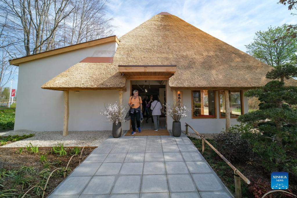People visit Japan's pavilion at Floriade Expo 2022 in Almere, the Netherlands, on April 14, 2022. With the theme "Growing Green Cities," Floriade Expo 2022, a world horticultural exhibition, opened here on Thursday. (Xinhua/Zhang Cheng)