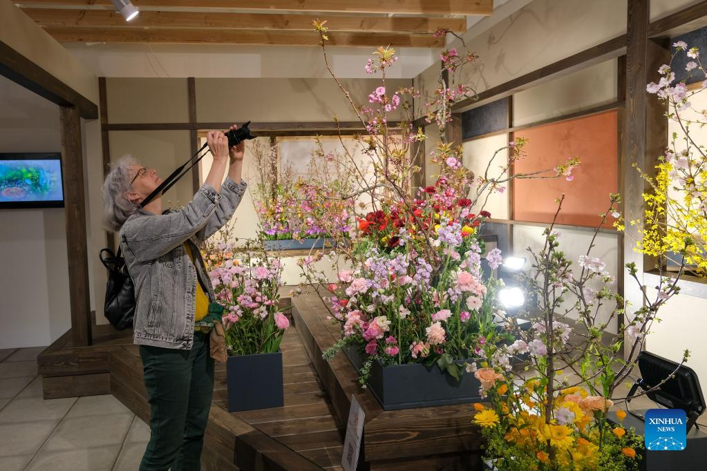 A woman visits Japan's pavilion at Floriade Expo 2022 in Almere, the Netherlands, on April 14, 2022. With the theme "Growing Green Cities," Floriade Expo 2022, a world horticultural exhibition, opened here on Thursday. (Xinhua/Zhang Cheng)