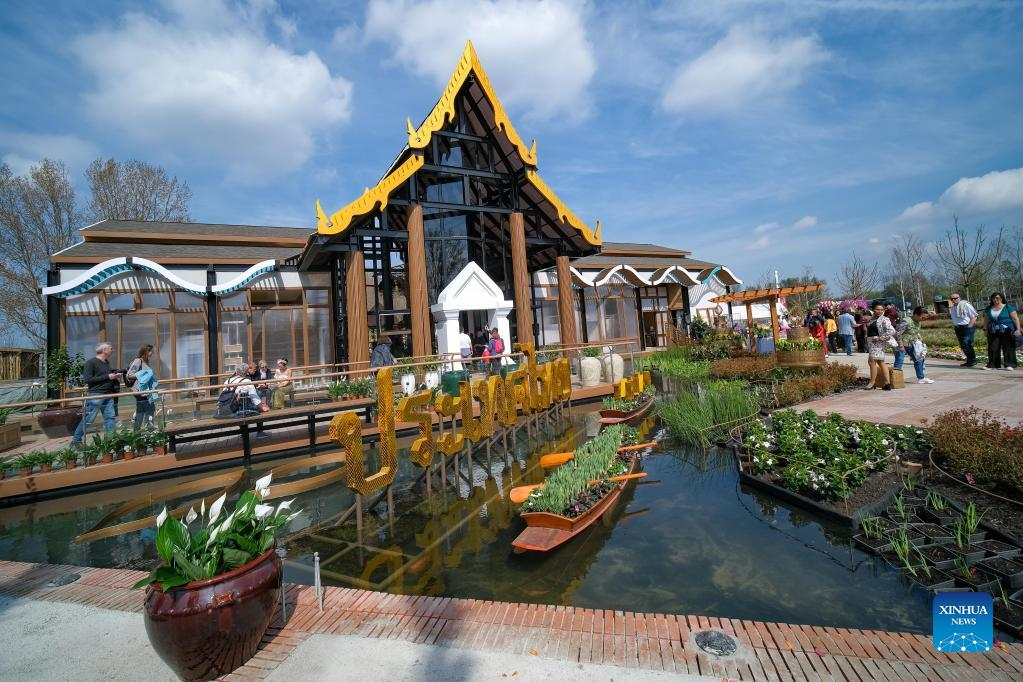 People visit Thailand's pavilion at Floriade Expo 2022 in Almere, the Netherlands, on April 14, 2022. With the theme "Growing Green Cities," Floriade Expo 2022, a world horticultural exhibition, opened here on Thursday. (Xinhua/Zhang Cheng)
