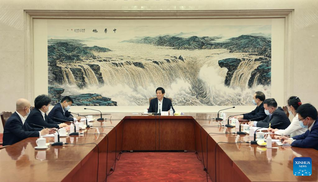 BEIJING, April 18 (Xinhua) -- Top legislator Li Zhanshu on Monday urged Chinese lawmakers to perform their statutory duties, faithfully represent the people's interests, and pave the way for the 20th National Congress of the Communist Party of China (CPC).