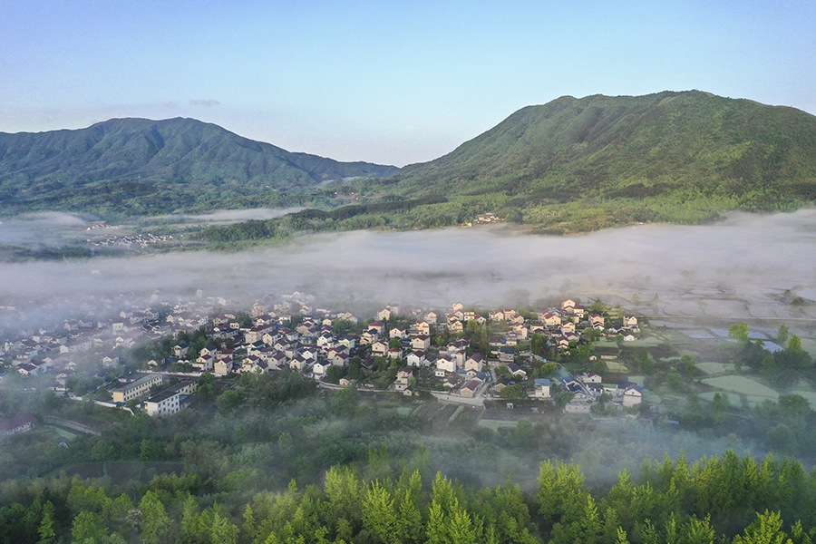 Photo shows picturesque villages dotting the landscape. (Photo/Jiang Jianxing)