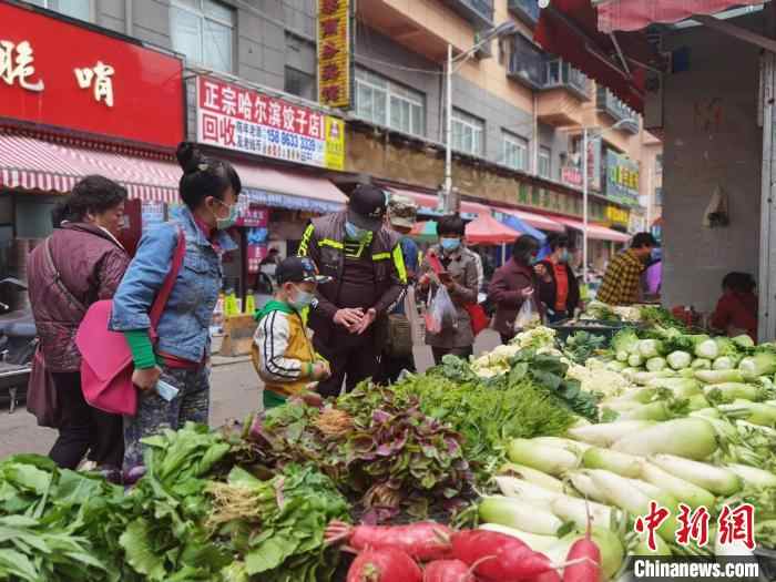 Photo shows Frederic Moal and his family strolling through a vegetable market. (Chinanews.com/Zhou Yanling)