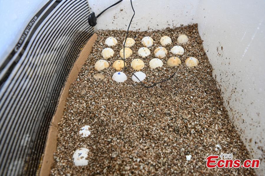 Turtle eggs are incubated artificially in a incubator at Huidong Harbor Sea Turtle National Nature Reserve in Huizhou City, south China's Guangdong Province, May 18, 2022. (Photo: China News Service/Chen Wenmin)