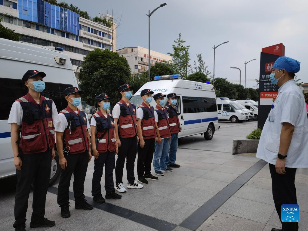 Members of a medical rescue team prepare to set out in Chengdu, southwest China's Sichuan Province, June 1, 2022. A 6.1-magnitude earthquake rattled Lushan County of Ya'an City in southwest China's Sichuan Province, at 5:00 p.m. Wednesday (Beijing Time), according to the China Earthquake Networks Center (CENC). (Xinhua)