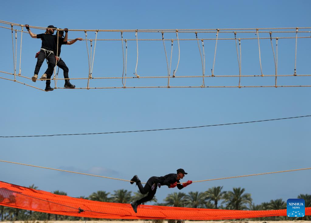 Members of the Palestinian Hamas security forces show their skills as they take part in a military graduation ceremony in the southern Gaza Strip city of Khan Younis, on June 30, 2022. (Photo by Yasser Qudih/Xinhua)