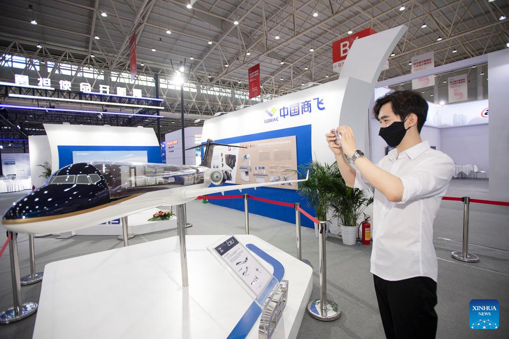 A visitor takes photos of an exhibit during the fifth China International Industrial Design Exhibition in Wuhan, central China's Hubei Province, Aug. 5, 2022. With an exhibition area of nearly 30,000 square meters, the fifth China International Industrial Design Exhibition kicked off at the Wuhan International Expo Center on Friday, attracting the participation of approximately 330 enterprises from around the world. (Xinhua/Xiong Qi)