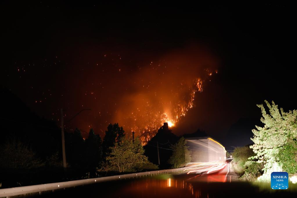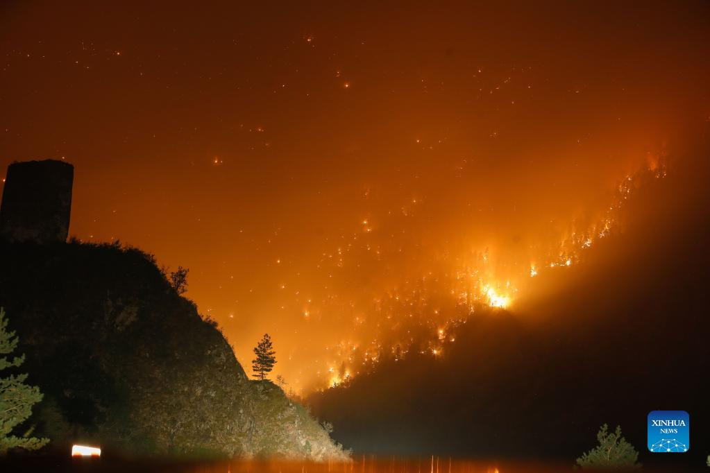 Photo taken on Aug. 23, 2022 shows a fire site in the forest area of the central resort town of Borjomi, Georgia. (Photo by Tamuna Kulumbegashvili/Xinhua)