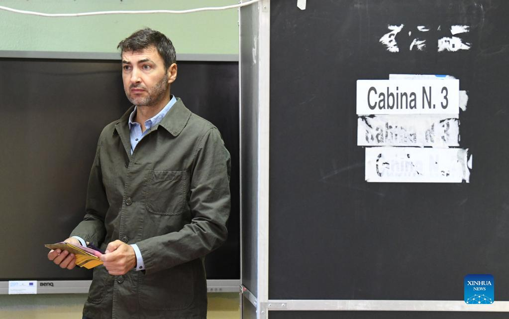 A citizen prepares to cast his ballot at a polling station in Rome, Italy, Sept. 25, 2022. Polls opened to renew the parliament in Italy early on Sunday, in a snap election seen as crucial for the country. (Xinhua/Jin Mamengni)