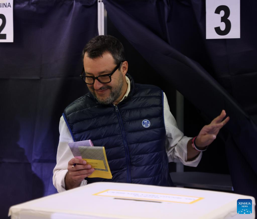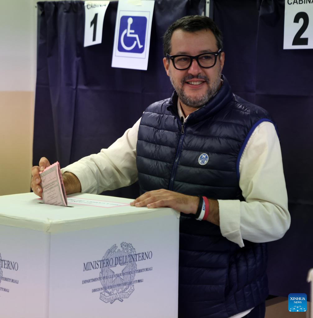 The League party's leader Matteo Salvini casts his ballot at a polling station in Milan, Italy, Sept. 25, 2022. Polls opened to renew the parliament in Italy early on Sunday, in a snap election seen as crucial for the country. (Xinhua)