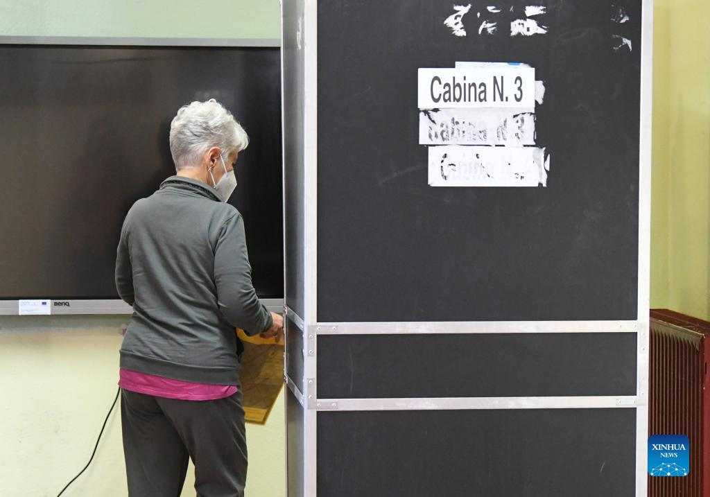 A citizen prepares to cast the ballot at a polling station in Rome, Italy, Sept. 25, 2022. Polls opened to renew the parliament in Italy early on Sunday, in a snap election seen as crucial for the country. (Xinhua/Jin Mamengni)