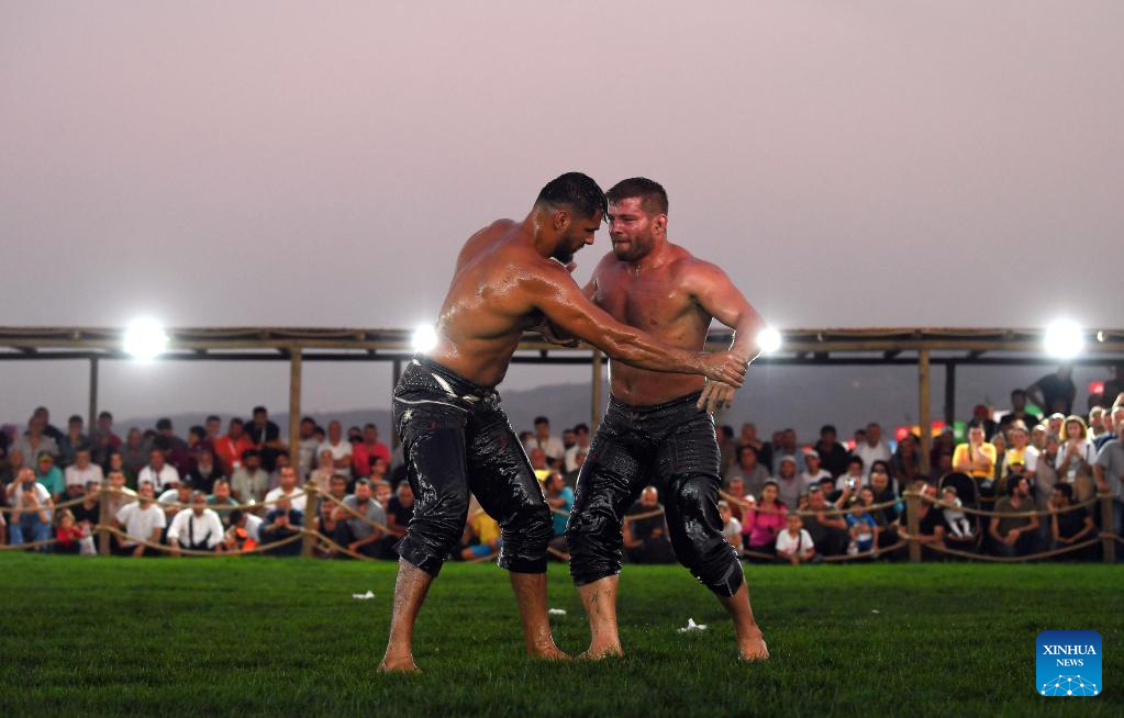 Wrestlers compete during the 4th World Nomad Games in Iznik, Trkiye, Sept. 30, 2022. (Xinhua/Shadati)