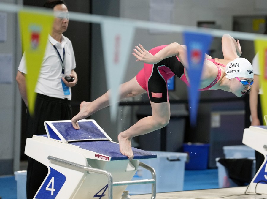 Zhang Yufei competes in the women's 50m freestyle final during the Chinese National Qualification Meet for the FINA 2022 World Championships (25M) in Beijing, Oct 25, 2022. (Xinhua/Jia Haocheng)