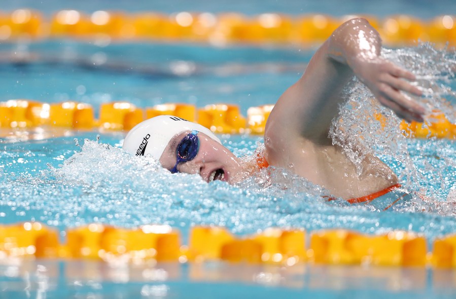 Li Bingjie competes in the women's 400m freestyle preliminaries during the Chinese National Qualification Meet for the FINA 2022 World Championships (25M) in Beijing, Oct 25, 2022. (Xinhua/Jia Haocheng)