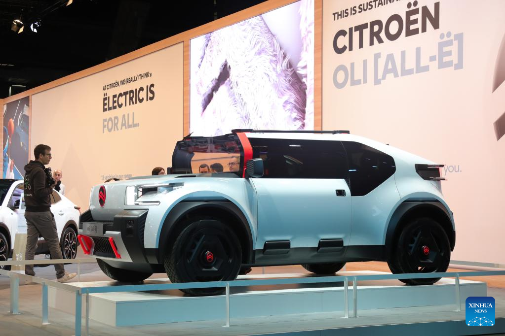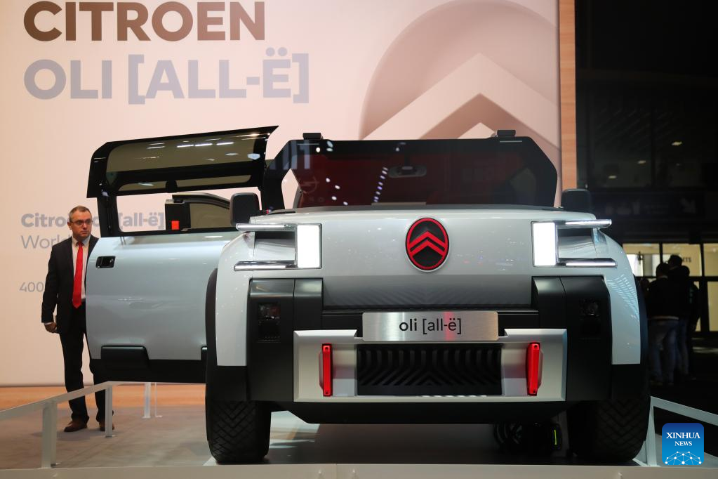 A Citroen Oli concept car is seen during the press day of the 100th Brussels Motor Show in Brussels, Belgium, Jan. 13, 2023. The 100th Brussels Motor Show will be held here from Jan. 14 to 22. (Xinhua/Zheng Huansong)