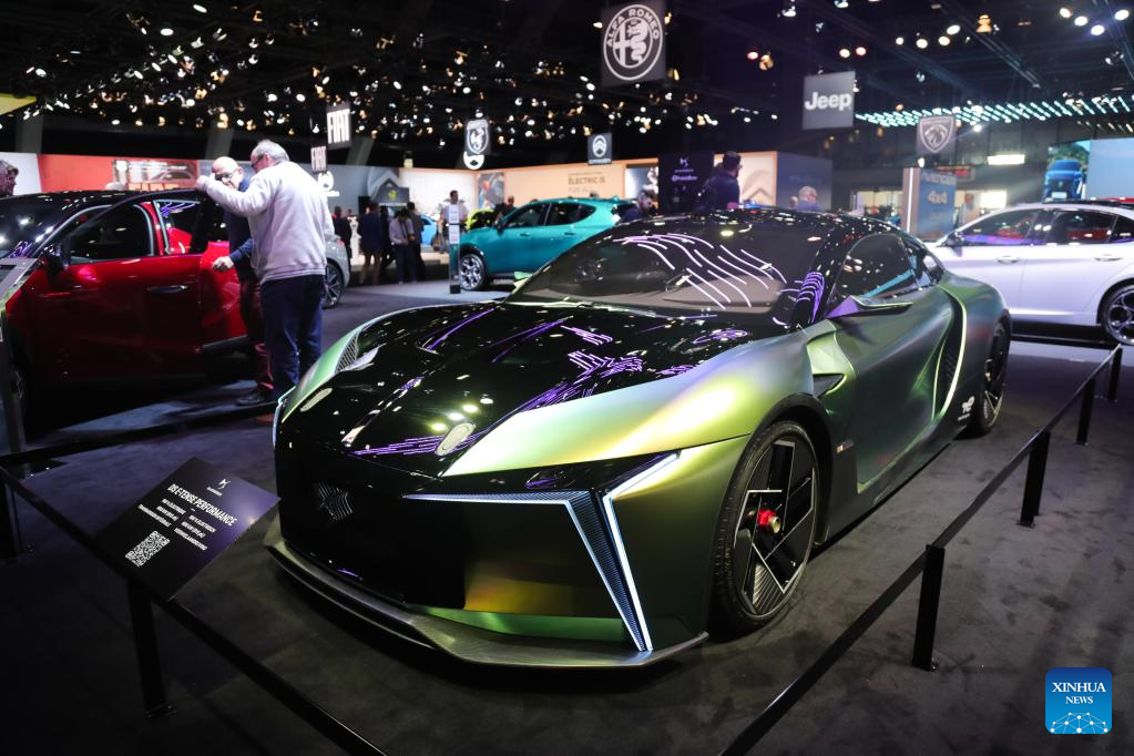 A DS E-Tense Performance concept car is seen during the press day of the 100th Brussels Motor Show in Brussels, Belgium, Jan. 13, 2023. The 100th Brussels Motor Show will be held here from Jan. 14 to 22. (Xinhua/Zheng Huansong)
