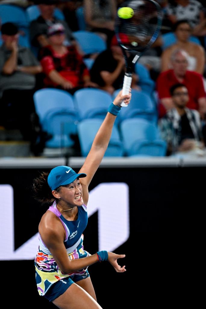 Wang Xiyu of China swallowed a straight-set loss to the tournament's 30th seed Karolina Pliskova of the Czech Republic while Zhang Zhizhen was edged out by Ben Shelton of the United States in a grueling five-setter at the Australian Open.