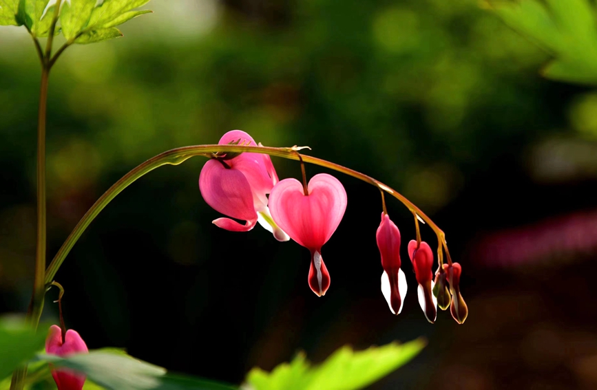 Photo shows blooming heart-shaped flowers of Asian bleeding-heart, a species of flowering plant that is commonly known as the “purse peony” in Luoyang city, central China’s Henan Province. (Photo courtesy of the publicity department of the Communist Party of China Luoyang municipal committee)