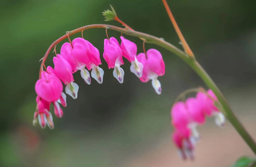 Photo shows blooming heart-shaped flowers of Asian bleeding-heart, a species of flowering plant that is commonly known as the “purse peony” in Luoyang city, central China’s Henan Province. (Photo courtesy of the publicity department of the Communist Party of China Luoyang municipal committee)