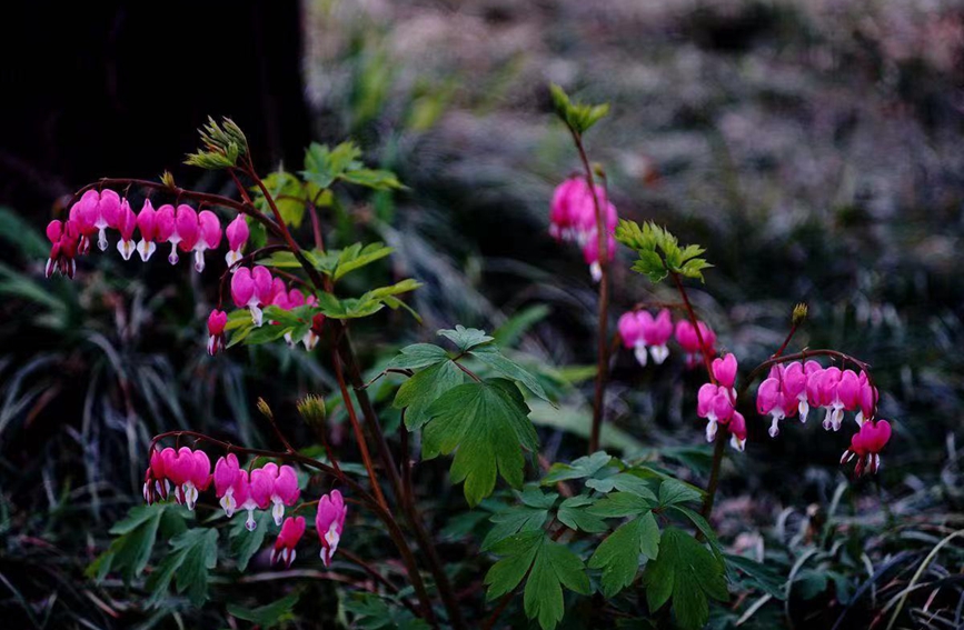 Photo shows blooming heart-shaped flowers of Asian bleeding-heart, a species of flowering plant that is commonly known as the “purse peony” in Luoyang city, central China’s Henan Province. (Photo courtesy of the publicity department of the Communist Party of China Luoyang municipal committee)