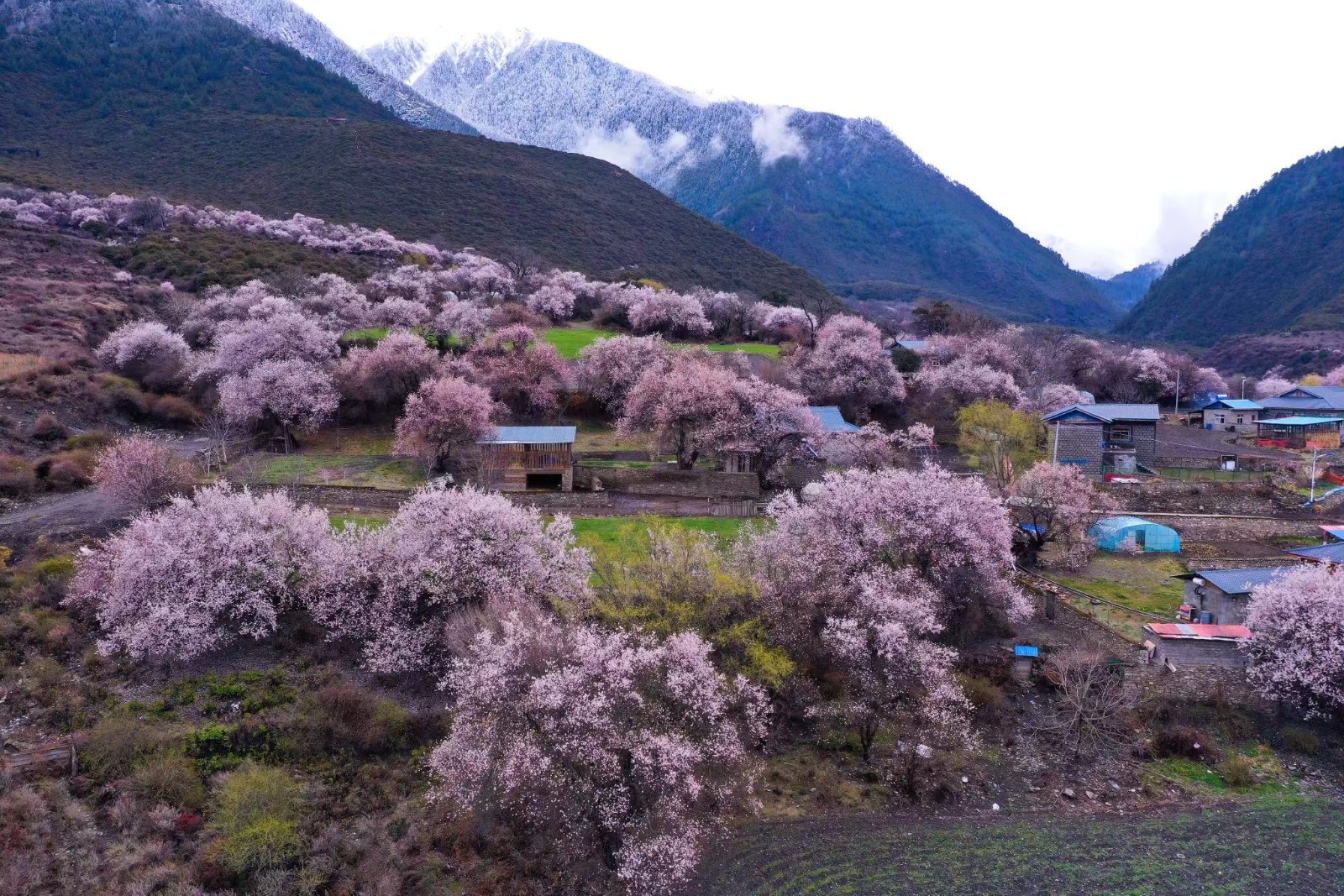 Photo shows a pink sea of peach blossoms in Bomi county, Nyingchi city, southwest China's Xizang Autonomous Region. (Photo/People’s Daily app)