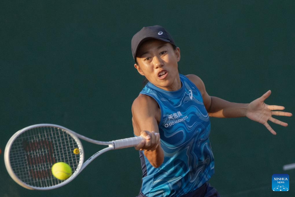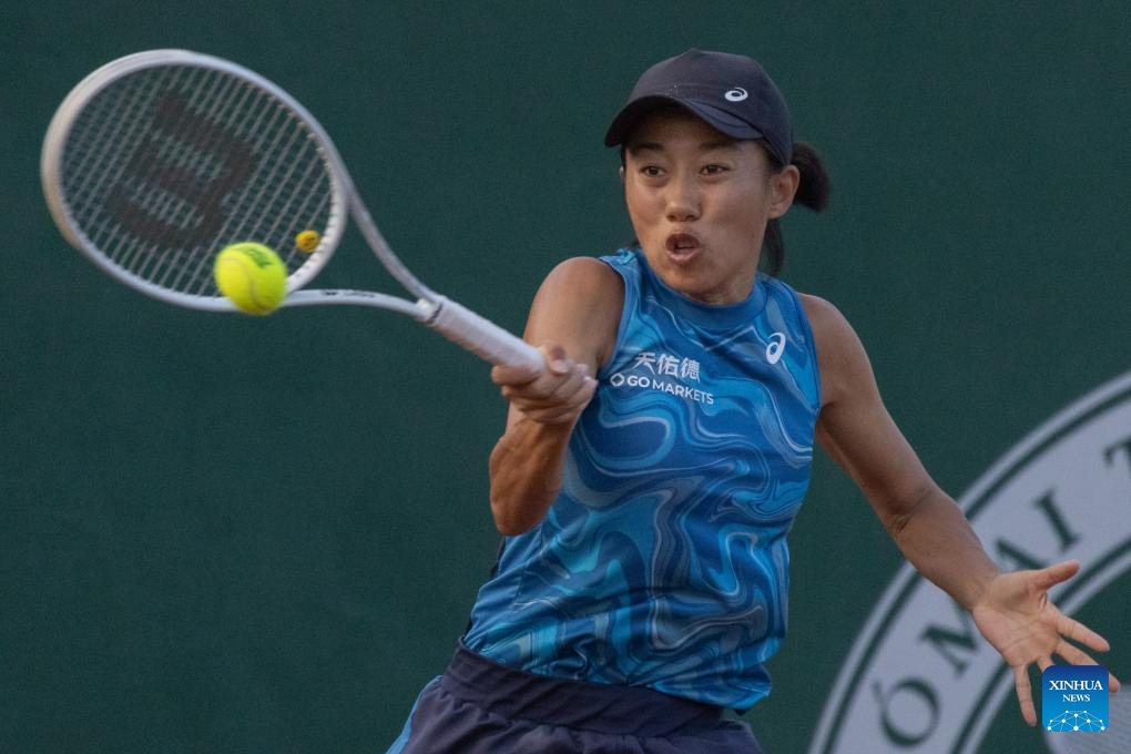Zhang Shuai of China competes during the women's singles round of 32 match between Amarissa Toth of Hungary and Zhang Shuai of China at the WTA 250 Hungarian Grand Prix in Budapest, Hungary on July 18, 2023. (Photo by Attila Volgyi/Xinhua)