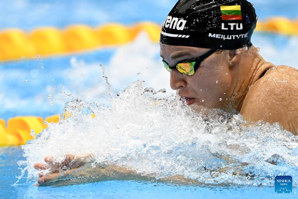 Lithuania's Ruta Meilutyte competes during the women's 50m breaststroke final of swimming at the World Aquatics Championships in Fukuoka, Japan, July 30, 2023. (Xinhua/Xu Chang)