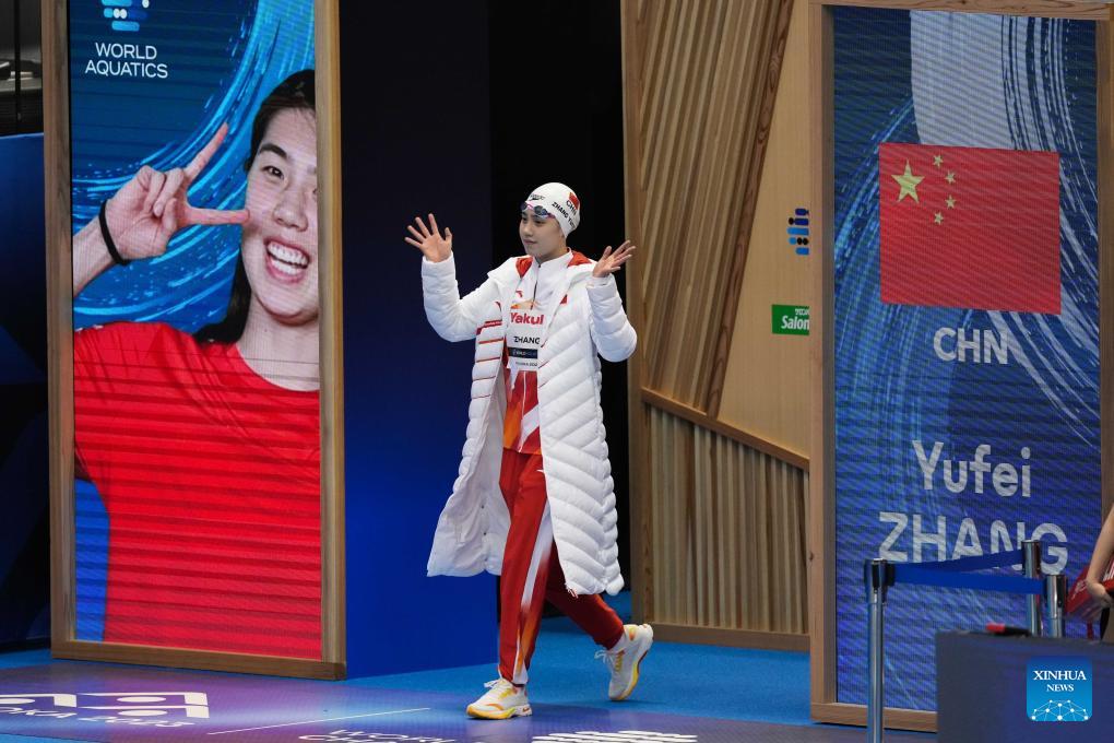 China's Zhang Yufei competes during the women's 50m freestyle final of swimming at the World Aquatics Championships in Fukuoka, Japan, July 30, 2023. (Xinhua/Xu Chang)