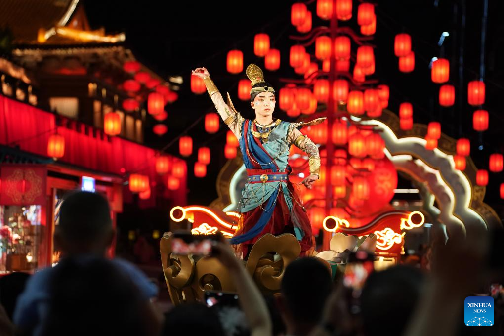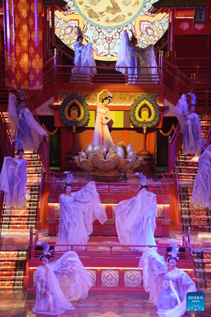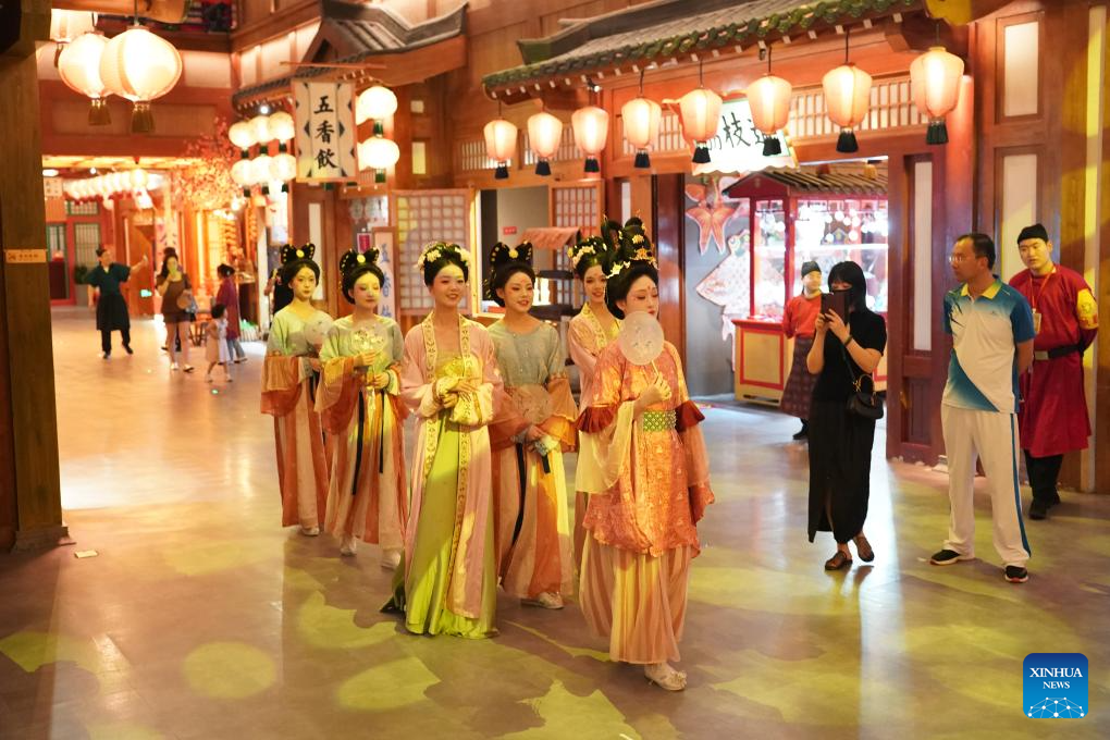 Artists stage a performance at a Tang Dynasty-themed scenic area in Xi'an, northwest China's Shaanxi Province, May 19, 2024. Xi'an, also known as Chang'an in ancient times, has a history stretching back over 3,100 years. Boasting world-famous sites such as the Terracotta Warriors, Xi'an served as the capital for 13 dynasties over the course of China's history. Today, tradition and modernity are intertwined in Xi'an, and its history is embedded within the hustle and bustle of urban life. (Xinhua/Shao Rui)