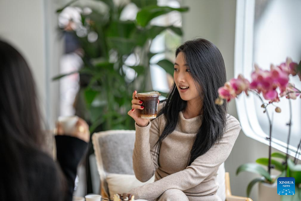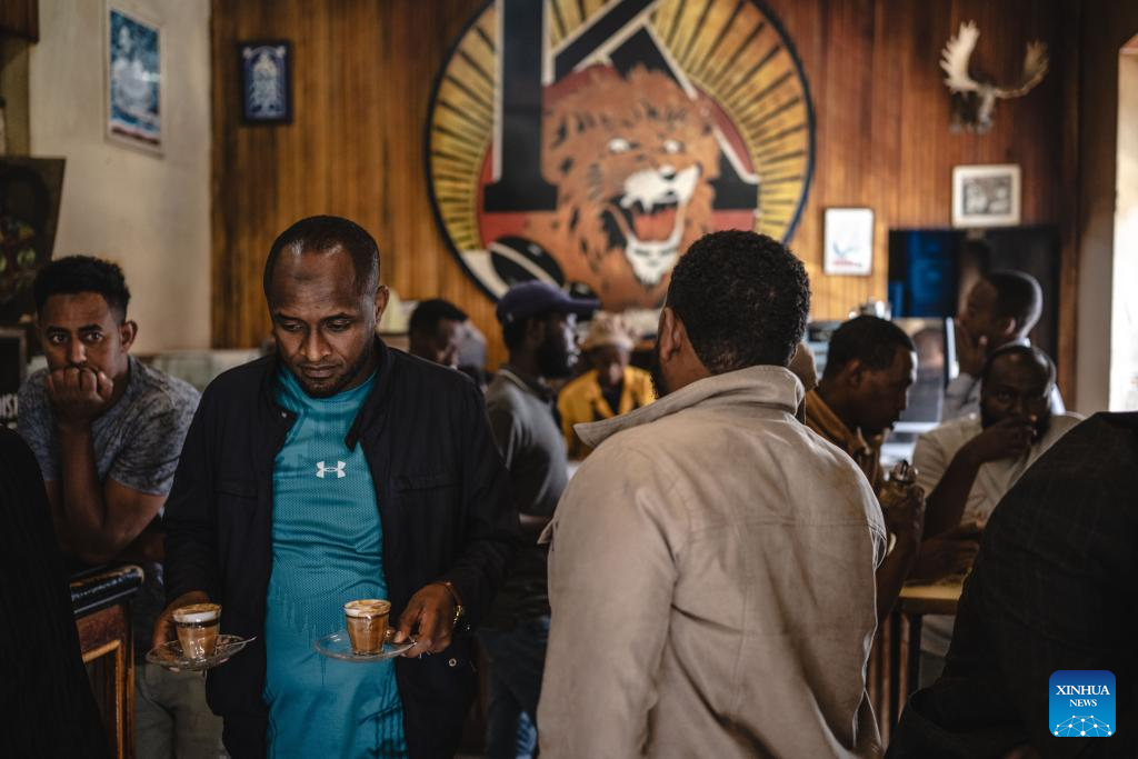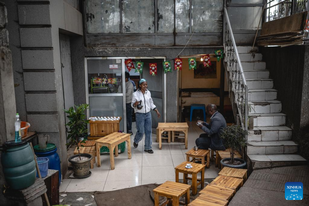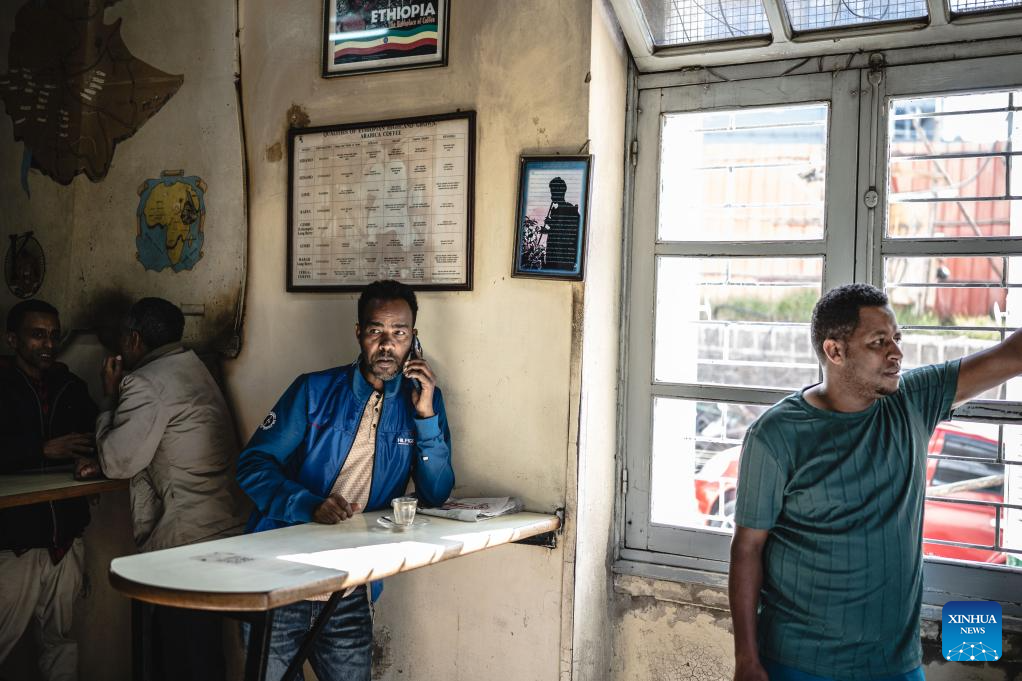 Customers are seen at a cafe in Addis Ababa, Ethiopia, Jan. 8, 2025. As the Spring Festival approaches, many tourists who have just finished their trip in Yunnan choose to take home one or two bags of coffee beans that they roasted themselves. These beans have become a special festive gift this year, whether for friends and family or for personal enjoyment.