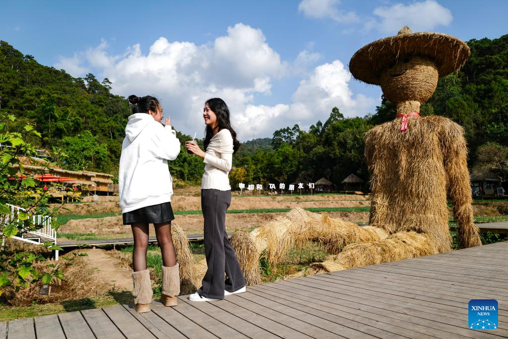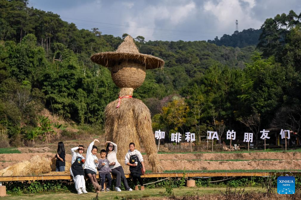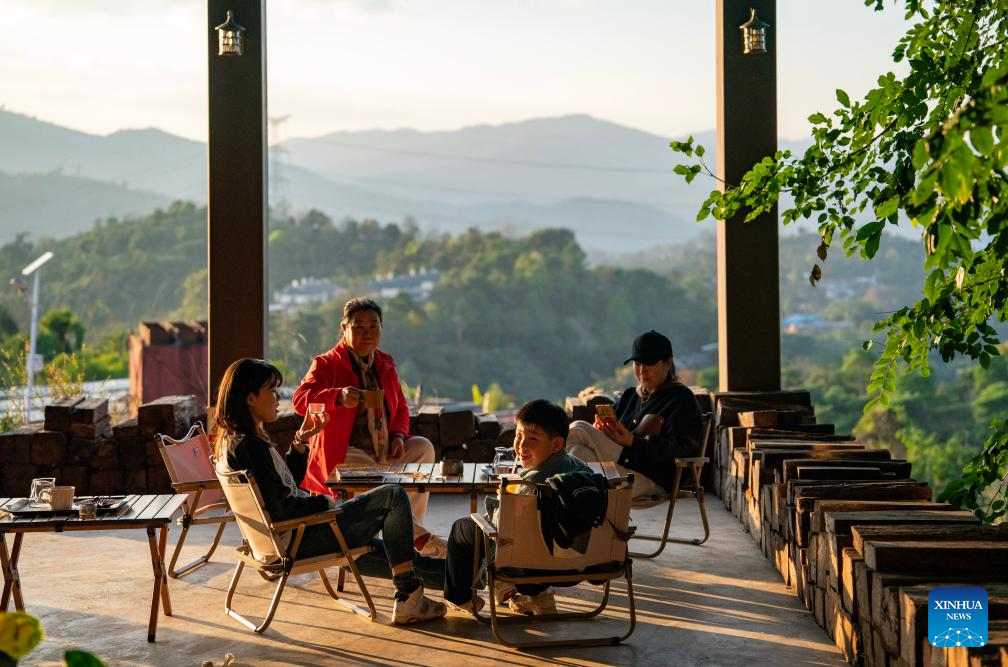 Tourists relax at a coffee manor in Pu'er, southwest China's Yunnan Province, Jan. 7, 2025. As the Spring Festival approaches, many tourists who have just finished their trip in Yunnan choose to take home one or two bags of coffee beans that they roasted themselves. These beans have become a special festive gift this year, whether for friends and family or for personal enjoyment.