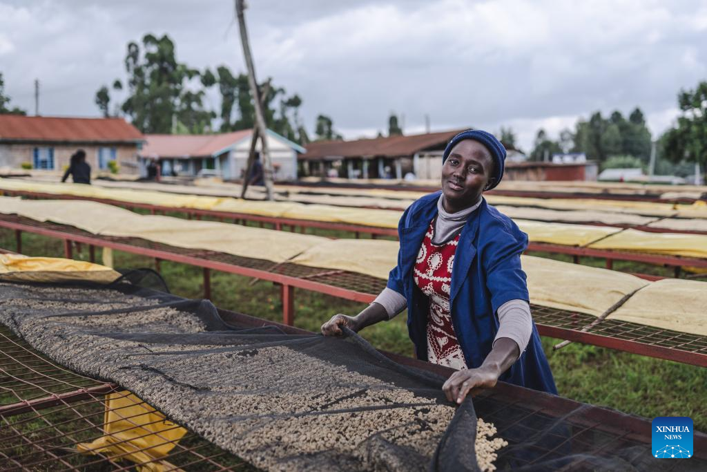 A staff member dries coffee beans at a factory in Kirinyaga, Kenya, Dec. 18, 2024. As the Spring Festival approaches, many tourists who have just finished their trip in Yunnan choose to take home one or two bags of coffee beans that they roasted themselves. These beans have become a special festive gift this year, whether for friends and family or for personal enjoyment.