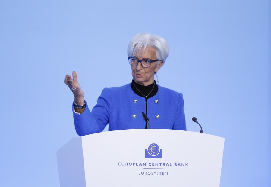European Central Bank (ECB) President Christine Lagarde speaks during a press conference at the ECB headquarters in Frankfurt, Germany, Jan. 30, 2025. The ECB on Thursday decided to lower key interest rates by 25 basis points. (Xinhua/Zhang Fan)