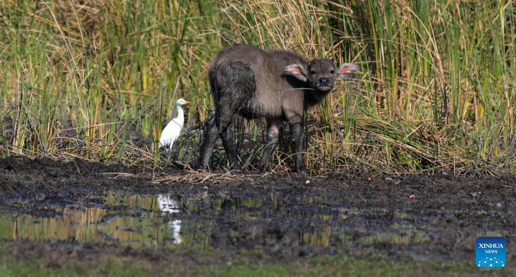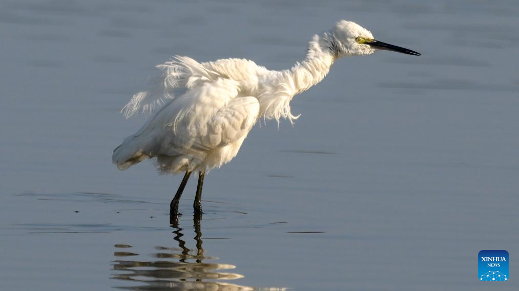 A egret forages at Haiwei wetland in Changjiang Li Autonomous County, south China's Hainan Province, Jan. 24, 2025. As one of the few coastal freshwater swamp wetlands in Hainan Island, the ecosystem and biodiversity of Haiwei wetland are being effectively protected, and it has become an important habitat for migratory birds on the west coast of Hainan Island. (Xinhua/Yang Guanyu)