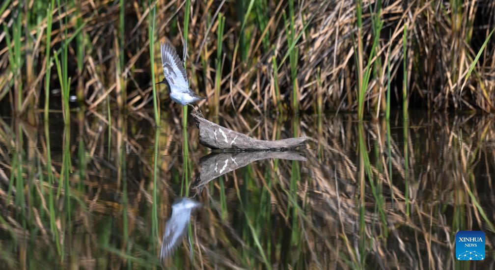 A common sandpiper is pictured at Haiwei wetland in Changjiang Li Autonomous County, south China's Hainan Province, Jan. 24, 2025. As one of the few coastal freshwater swamp wetlands in Hainan Island, the ecosystem and biodiversity of Haiwei wetland are being effectively protected, and it has become an important habitat for migratory birds on the west coast of Hainan Island. (Xinhua/Yang Guanyu)