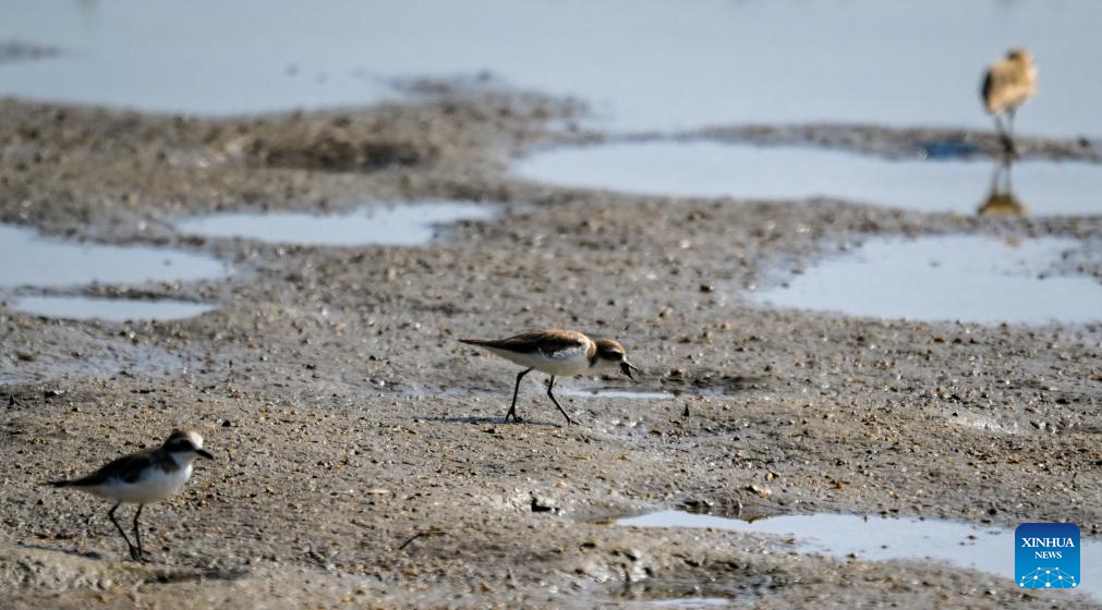 Siberian sand plovers are pictured at Haiwei wetland in Changjiang Li Autonomous County, south China's Hainan Province, Jan. 23, 2025. As one of the few coastal freshwater swamp wetlands in Hainan Island, the ecosystem and biodiversity of Haiwei wetland are being effectively protected, and it has become an important habitat for migratory birds on the west coast of Hainan Island. (Xinhua/Yang Guanyu)