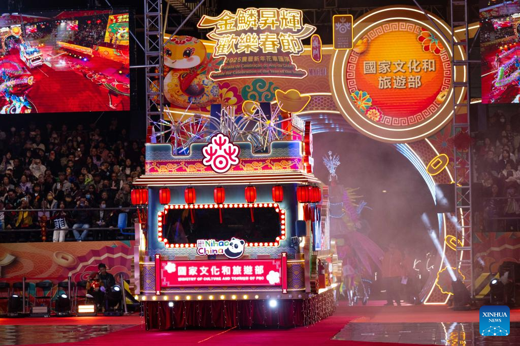 A float is pictured during a parade in celebration of the Chinese New Year in Macao, south China, Jan. 31, 2025. A parade was held Friday by the Macao Government Tourism Office in Macao to celebrate the Chinese New Year, or the Spring Festival. (Xinhua/Cheong Kam Ka)