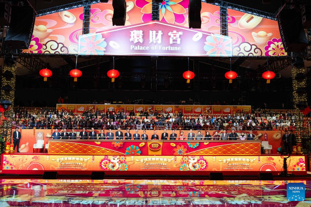 This picture shows the opening ceremony of a parade in celebration of the Chinese New Year in Macao, south China, Jan. 31, 2025. A parade was held Friday by the Macao Government Tourism Office in Macao to celebrate the Chinese New Year, or the Spring Festival. (Xinhua/Cheong Kam Ka)